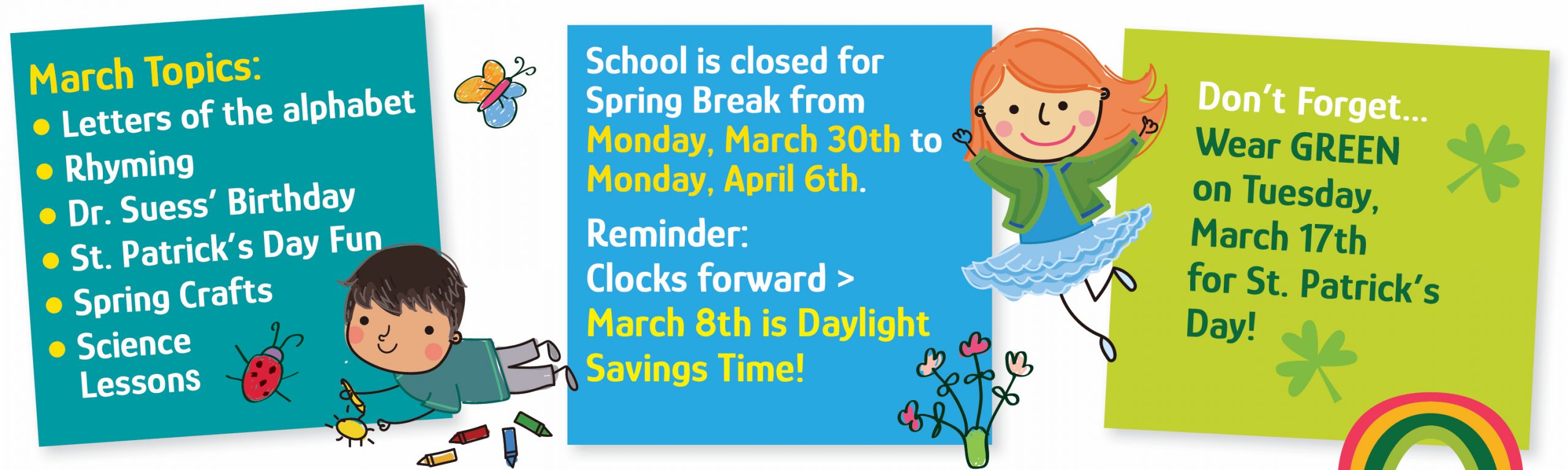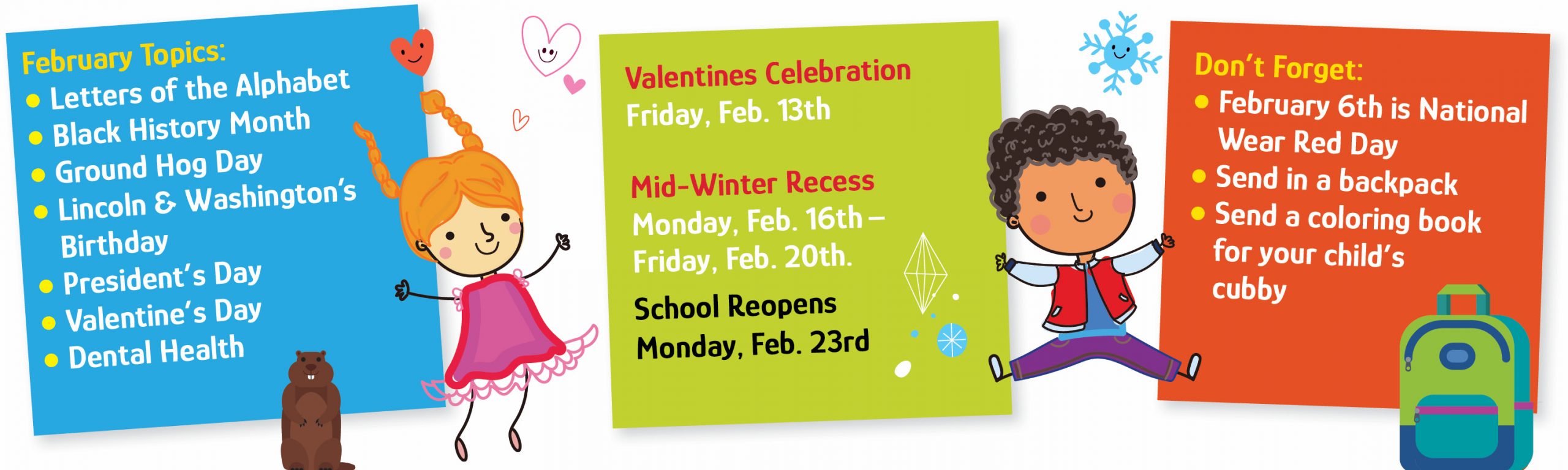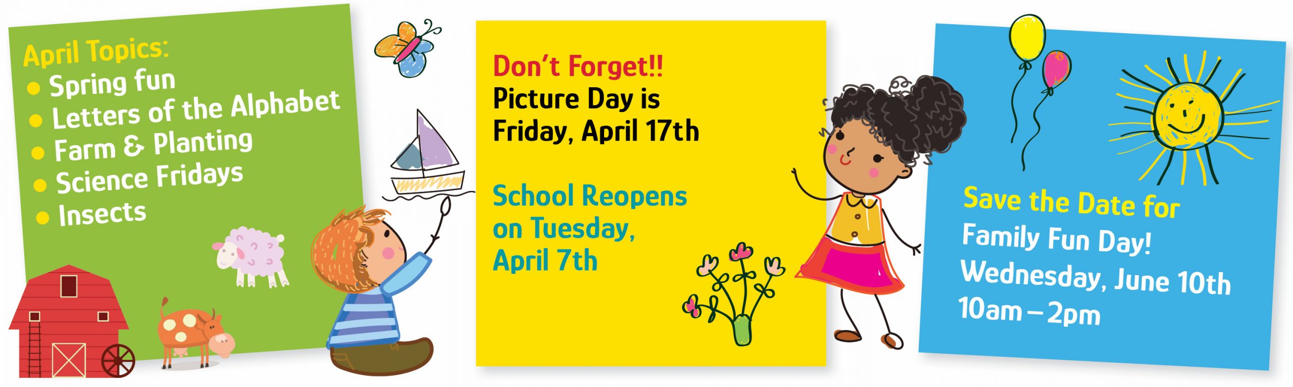 Hours of Operation: 7:30 a.m. – 5:30 p.m. We offer a full day program in conjunction with an extended hours program. We are in operation 12 months a year—regular school program from September through June with summer camp available in July and August. We offer flexible schedules to meet your specific needs. See price list insert for details on tuition fees.