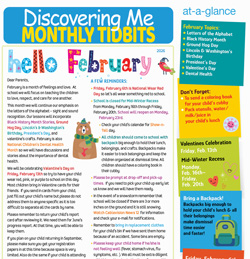 February is a month of feelings and love. At school we will focus on teaching the children to love, respect, and care for one another. This month we will continue our emphasis on the letters of the alphabet – sight and sound recognition. Our lessons will incorporate Black History Month Stories, Ground Hog Day, Lincoln’s & Washington’s Birthday, President’s Day, and valentine’s crafts. February is also National Children’s Dental Health Month so we will have discussions and stories about the importance of dental health.