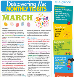 Three more weeks and spring will finally be here. We have a very busy month ahead of us with Dr. Seuss’ Birthday, a favorite author of ours, St. Patrick’s Day, the arrival of spring and many other fun activities including our Science Fridays. This month we will continue the letters of the alphabet. Other topics for the month include rhyming, Passover, Easter, and Spring Crafts. The change in weather in March as well as the arrival of spring will lead to all kinds of science lessons that the children love to do.